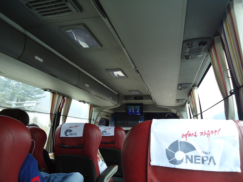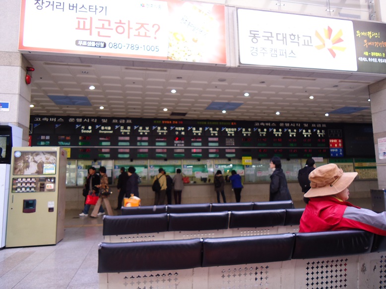 光州行きのバスはすでに入っていたのですが、運転手がおらず勝手に乗っていいものか迷った上、大きなトランクを勝手にバスのトランク入れにいれちゃってもいいものかと悩みました。