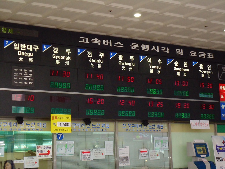 釜山から光州までは高速バスで移動しました。