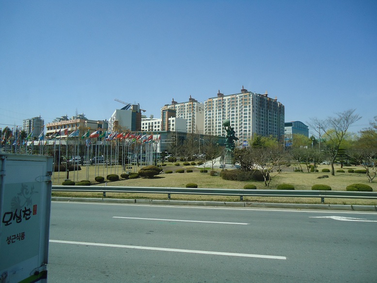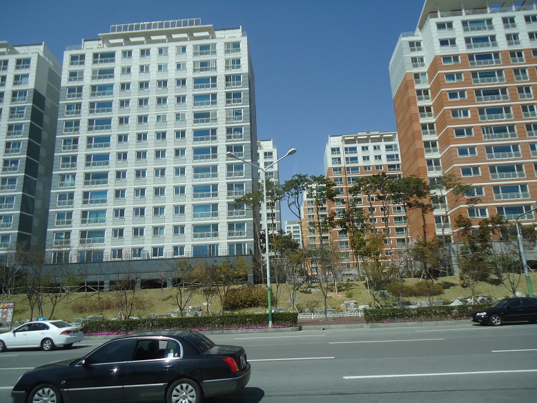 地震が来たら大丈夫だろうかと思えるようなアパート(日本では明らかにマンションですが、韓国ではアパートと言います)が林立しています↓